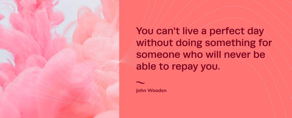 Possessing an unparalleled humility, legendary college basketball coachJohn Wooden used his patented “Pyramid of Success” to give his young, impressionable players the tools to succeed at both basketball and life. Wooden turned a fledgling UCLA athletics program into a powerhouse that won 10 NCAA national titles, and all the while he maintained that true success wasn’t based on accolades, but rather on being your best self. This quote speaks to Wooden’s ideology; he lived life by what he called a “Seven Point Creed,” which shunned egoism and prioritized helping others. It’s a reminder that the greatest reward isn’t necessarily wealth or fame, but being there for others, regardless of whether you receive anything in return.